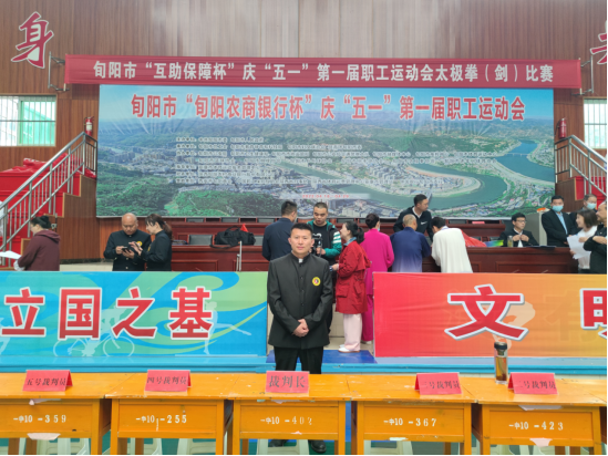 4月28日,应旬阳市总工会、旬阳市教育体育和科技局的邀请,我院副院长郭西魁为旬阳市“互助保障杯”庆“五一”第一届职工运动会太极拳(剑)比赛指导武术裁判工作,并在闭幕式上为获奖团体颁奖。