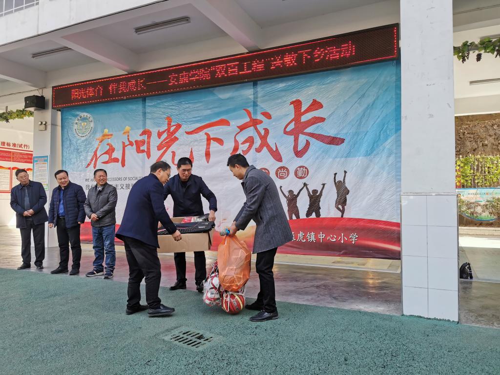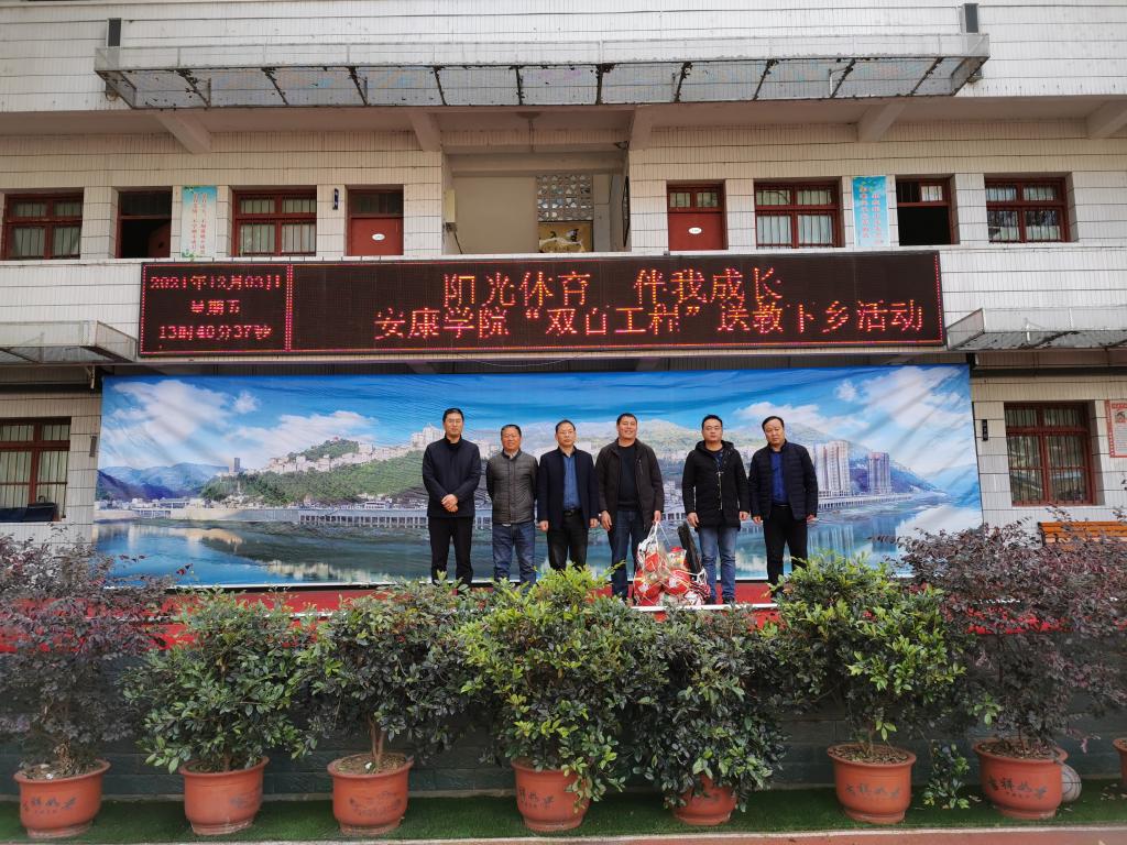 12月3日,澳门正规电子游戏平台联合直属四支部赴白河县麻虎镇开展“阳光体育 伴我成长”——安康学院“双百工程”送教下乡主题党日活动。教务处处长汪义瑞、澳门正规电子游戏平台党总支书记高立平、“双百工程”工作队队长付争方、教务处副处长陈国杰,以及教务处、澳门正规电子游戏平台其他师生党员共计20余人参加了活动。送教下乡活动受到麻虎镇中心小学、初级中学的热情接待。