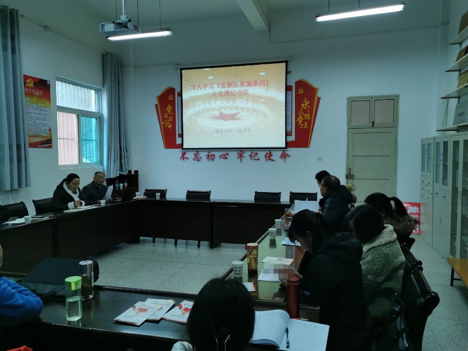 为深入贯彻习近平法治思想,落实宪法和监察法的精神。根据学校统一要求,12月8日下午,澳门正规电子游戏平台在体育馆一楼会议室开展监察法实施条例专题学习活动,澳门正规电子游戏平台全体教职工参加了学习。主讲人:澳门正规电子游戏平台党总支书记高立平。
