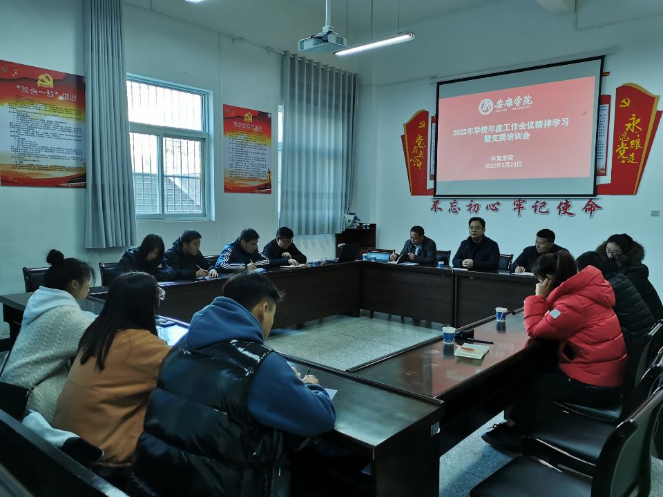 2月23日下午4点,澳门正规电子游戏平台党总支组织召开2022年学校年度工作会议精神学习暨支委培训会,参会人员有学校党委委员、宣传部部长、兼统战部长鲁延安、宣传部科长陈瑶,澳门正规电子游戏平台党总支委员和支部委员及部分学生党员。会议由高立平书记主持。
