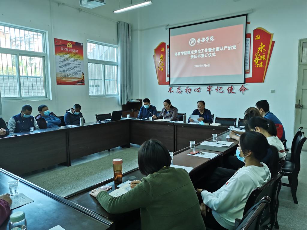 4月6日下午,澳门正规电子游戏平台在体育馆一楼会议室召开2022年稳定安全工作暨全面从严治党责任书签订仪式。澳门正规电子游戏平台全体教职工参加会议,会议由党总支书记高立平主持。