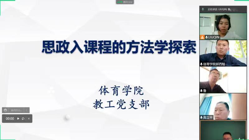 为促进党建与教研有机融合,发挥体育专业课的思政功能,强化立德树人、教书育人的责任,4月13日下午,澳门正规电子游戏平台教工党支部在腾讯会议召开线上“课程思政的方法学探索”专题会,安康学院党委副书记、校长钟生海同志、澳门正规电子游戏平台党总支书记高立平同志参加了会议,会议由教工党支部书记刘芹同志主持。