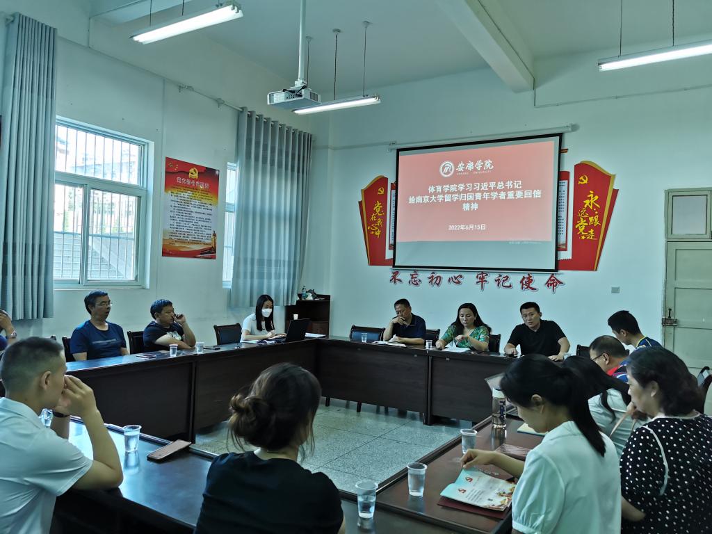 最后院长吕仙利强调要学深悟透习近平总书记重要回信的深刻内涵、核心要义和实践要求,结合学习省第十四次党代会的精神,扎实推动习近平总书记重要回信精神落地见效,立足本职,勇于创新,积极抓好体育一流专业建设,突出立德树人工作,以更加优异的成绩迎接党的二十大胜利召开。