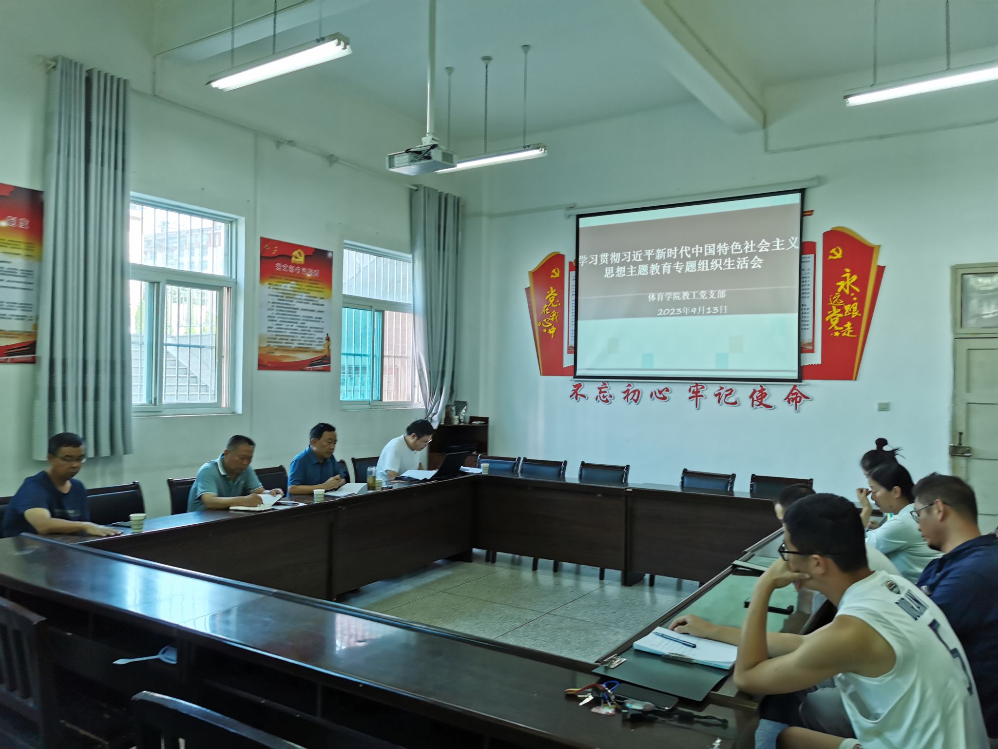 为深入贯彻落实党的二十大精神,严格执行党的组织生活制度,进一步发挥党员先锋模范作用,体育学院教工党支部于2023年9月13日下午召开了学习贯彻习近平新时代中国特色社会主义思想主题教育专题组织生活会,会议在澳门正规电子游戏平台会议室举行,本次会议由支部组织委员贾西栋主持,支部全体党员参加,安康学院校长钟生海以普通党员身份参加,澳门正规电子游戏平台党支部书记高立平也列席了本次会议。
