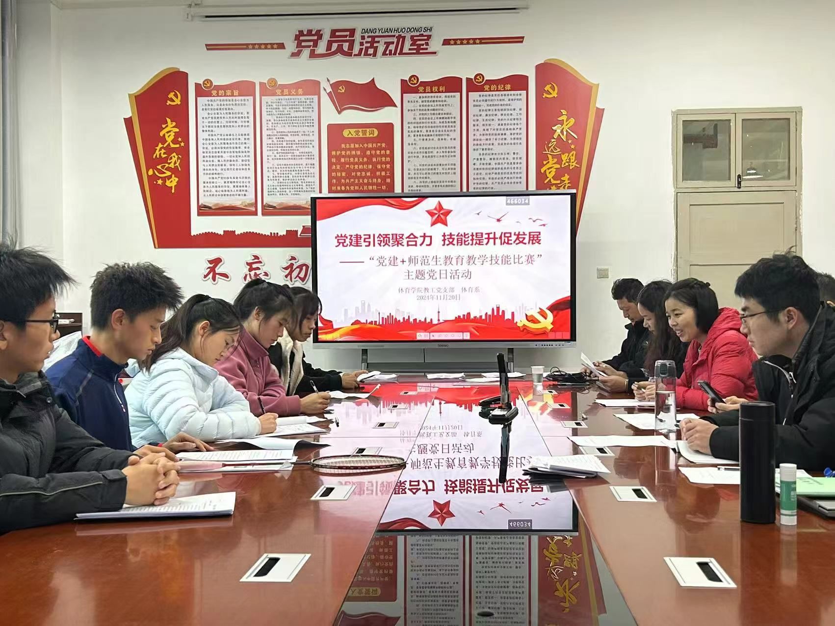 为深入贯彻党的教育方针,推动党建工作与专业教育的深度融合,进一步提高我院师范生教育教学技能,澳门正规电子游戏平台教工支部联合体育系于11月21日开展了“党建+师范生教育教学技能比赛”主题党日活动。学院领导班子成员,教工党支部书记、体育系主任等部分党员教师参加了活动。