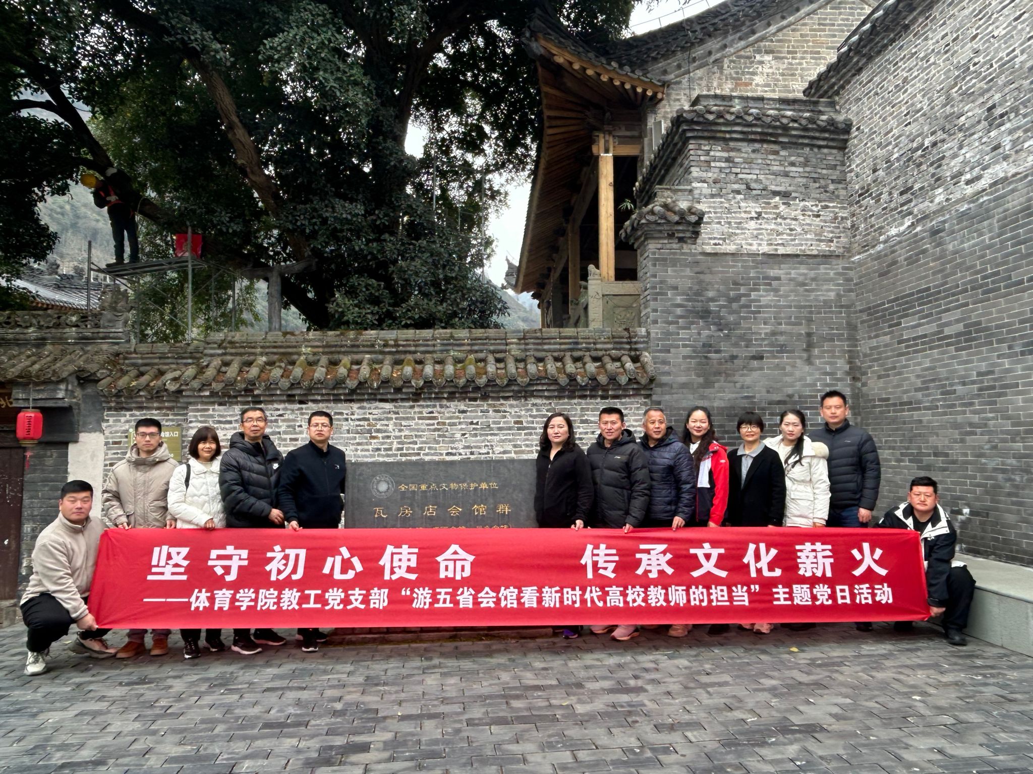 在党总支书记韩晔的带领下,大家来到了紫阳县五省会馆,怀着敬畏之心,认真参观着这座承载了深厚历史文化底蕴的五省会馆的每一处细节,仔细聆听每一段历史,深入了解了紫阳的历史变迁与文化传承。通过这次沉浸式的参观体验,全体党员不仅对当地传统文化有了更加深刻的认识与感悟,更为能够亲身触摸历史的脉搏、感受文化的厚重而倍感自豪与荣幸。