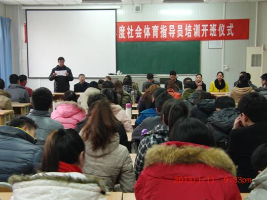2013年1月12日上午9:00,安康市2012-2013年度社会体育指导员培训班开班典礼在我校举行。安康市体育局党组成员、纪检组长陈复勇、安康团市委副书记梁鸿、安康市体育局群体科科长朱小燕、安康学院体育系主任冯德学、安康学院体育系副主任鲁宗成等领导以及部分授课教师和全体学员共一百余人参加了开班典礼,典礼仪式由安康学院体育系党总支书记沈军主持。