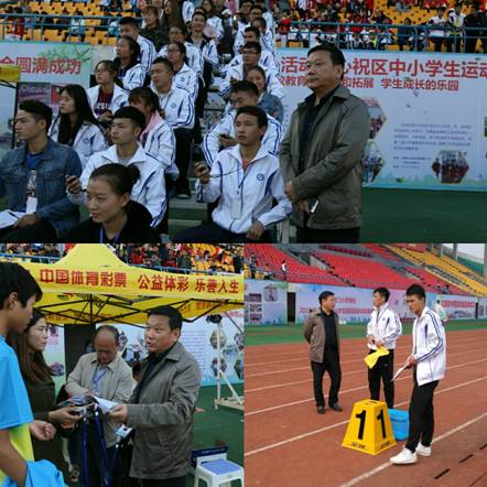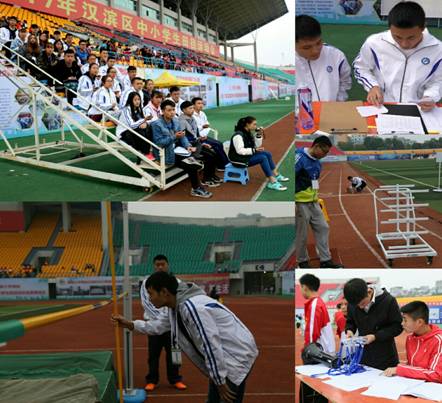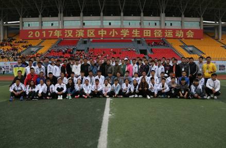 安康市汉滨区中小学生田径运动会于10月26日在安康市体育场顺利开幕, 经过4天的激烈角逐,于10月29日下午圆满完成各项赛程。应大会组委会邀请,我院院长冯德学教授、大学体育教研室主任李靖、澳门正规电子游戏平台骨干教师侯小康带领2016级全体学生担任本次运动会的裁判工作。
