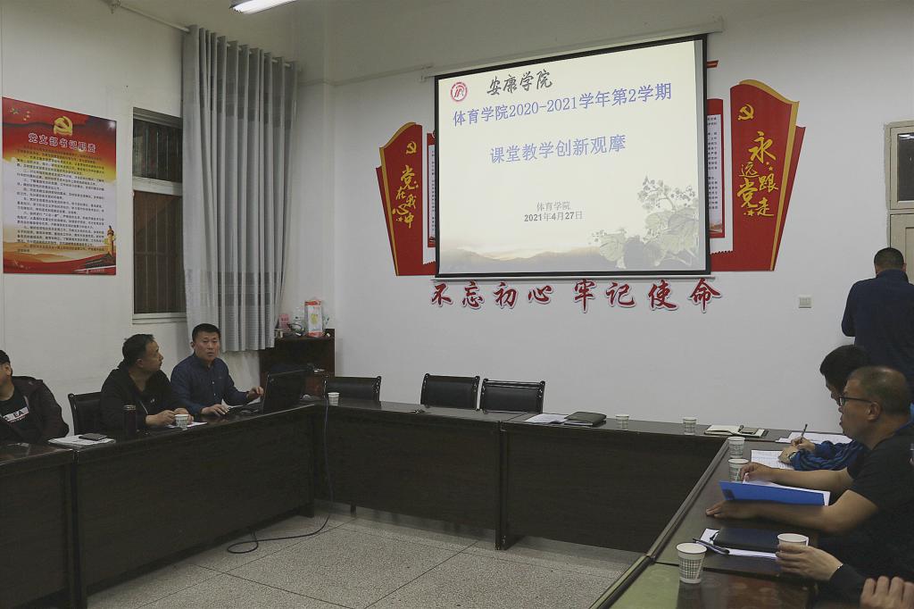 4月27日晚上,澳门正规电子游戏平台在会议室组织开展了2020-2021学年第2学期第一次课堂教学创新观摩活动,澳门正规电子游戏平台领导、教学督导组及全体教师参加了教学观摩。本学期澳门正规电子游戏平台教师教学任务量较重,为了有效避免因教学工作冲突,观摩活动参与人数少的问题,本次课堂教学创新观摩活动采用了视频观摩方式,视频内容选择了全国中小学体育课堂教学创新大赛获奖的部分课程。