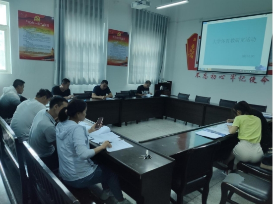 5月19日,大学体育教研室在澳门正规电子游戏平台会议室召开课程思政研讨会,教研室全体教师参加。本次会议从大学体育课程的教学大纲入手,由负责课程大纲修订的老师,详细讲解各科目大纲,特别是课程思政设计方面的具体细节。