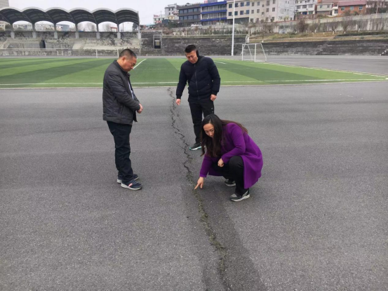 检查人员依次对澳门正规电子游戏平台实验室、江南、江北体育器材室、篮球场、单杠、双杠、足球场、乒乓球场、羽毛球场、田径场等场地及器械进行了检查,对设施的固定情况,使用年限,安全隐患进行评估,吕院长强调器材如有损坏需及时维修或者更换确保学生使用安全。在江北校区田径场跑道有严重裂缝,高书记指出要及时和相关部门联系,做好维修服务,保证学生在上课期间的安全使用。