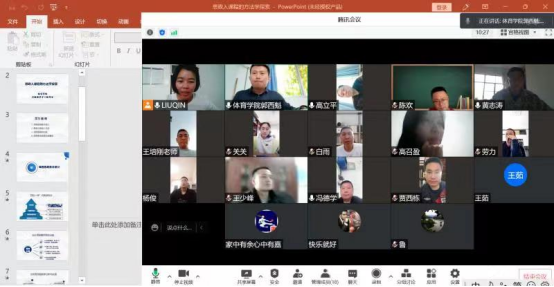 4月13日下午,澳门正规电子游戏平台实验教学中心(教研室)组织课改沙龙活动。本次教研活动围绕课程思政教学设计展开,实验教学中心全体老师参与了本次教研活动。通过研讨,大家一致认为,体育教育专业课程思政元素的凝练,需要紧密结合专业特点,更加细致、详细的学习与总结。与会老师一致认为,本学期的教研活动应重点围绕课程思政元素凝练开展,切实做好课程思政示范课程的打造。