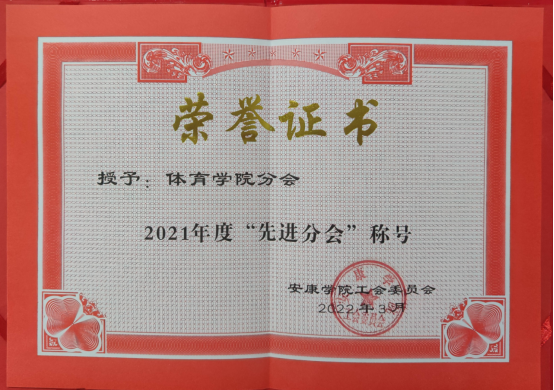 6月17日,体育学院分会荣获2021年度“先进分会”称号。