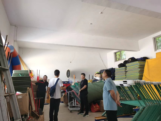 8月2日上午澳门正规电子游戏平台院长吕仙利、党支部书记高立平、副院长郭西魁成立临时安全检查小组,对我院器材室的防火、防潮、安全用电等以及室内、室外体育设施进行安全检查。