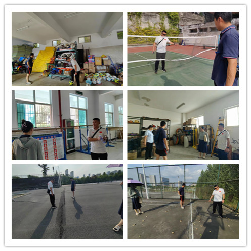 检查人员依次对江南体育器材室、篮球场、澳门正规电子游戏平台实验室、乒乓球场、江北器材室、江北田径场、江北篮球场等场地及器械进行了检查,对设施的固定情况,使用年限,安全隐患进行评估,郭院长强调器材如有损坏需及时维修或者更换确保学生使用安全。尤其在江北校区田径场、网球场、篮球场场地有凹陷,护栏底部有破损,指出要及时和相关部门联系,做好维修服务,保证学生在上课期间的安全使用。