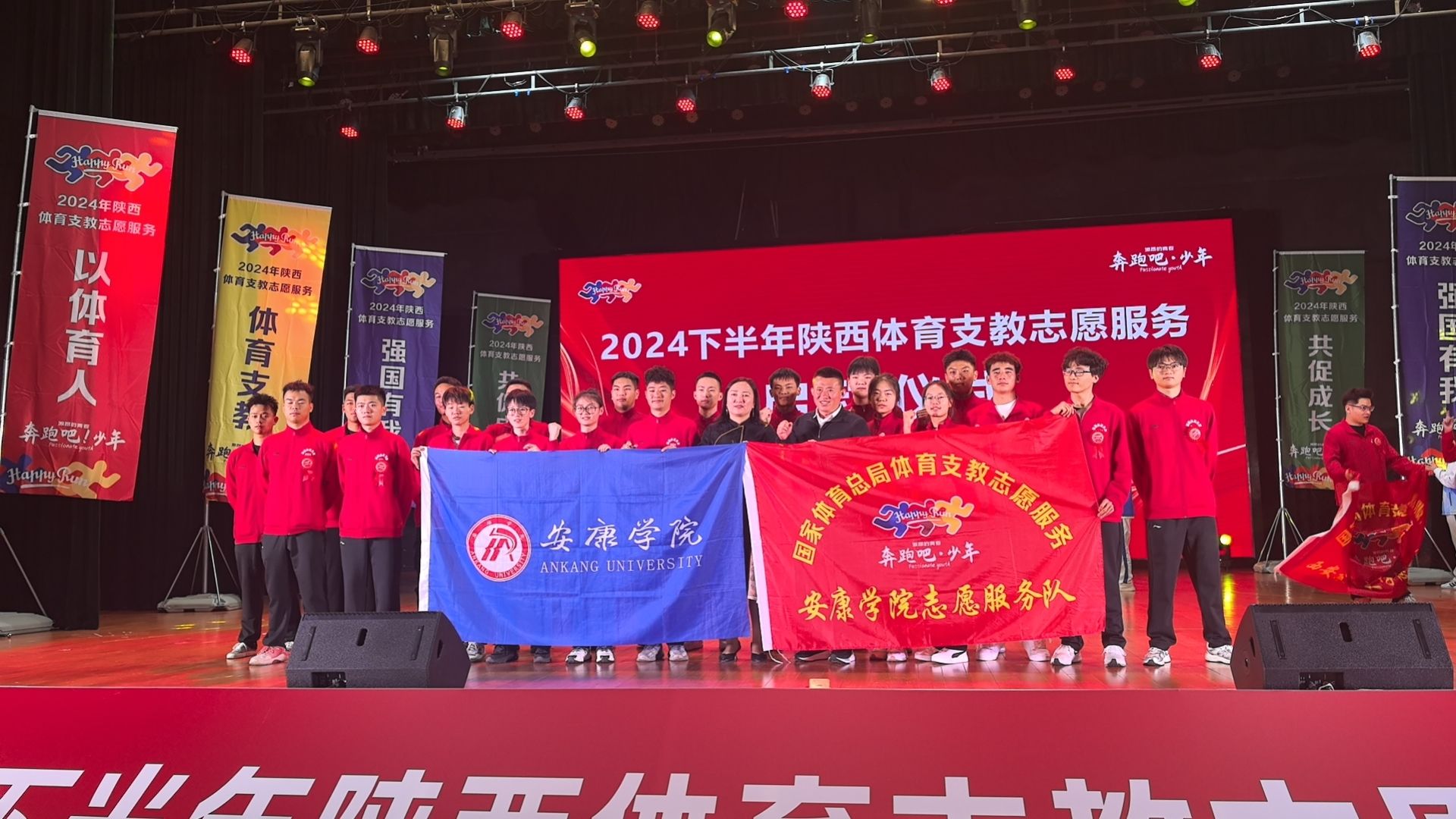 10月13日上午,2024年下半年陕西省体育支教志愿服务启动仪式在西安澳门正规电子游戏平台艺术馆大礼堂举行,省体育局、省教育厅、西安澳门正规电子游戏平台相关负责人共同为体育支教志愿服务队授旗。