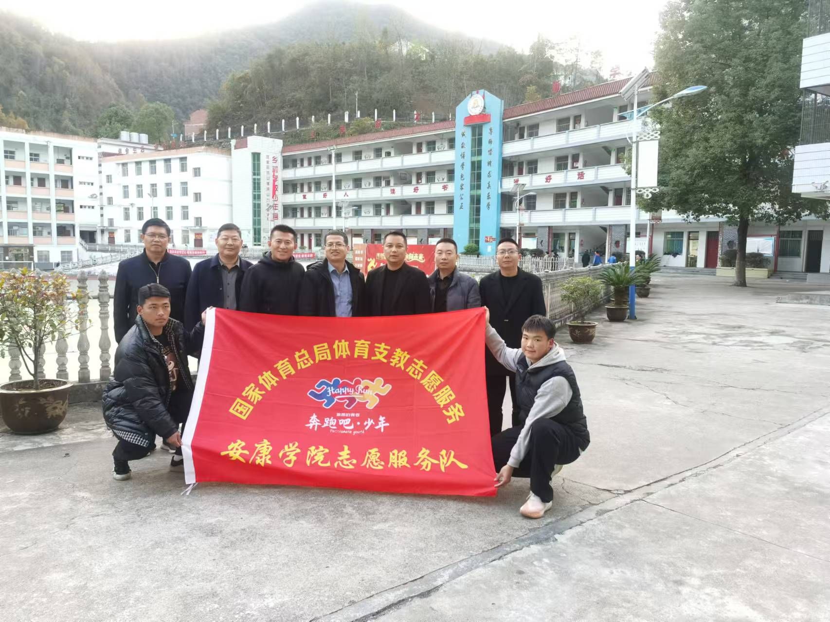 今年下半年我院共选派20名体育教育专业学生组建了陕西省支教志愿服务安康学院支教团汉滨区支教队,奔赴汉滨区10所偏远山区中小学开展体育支教活动。