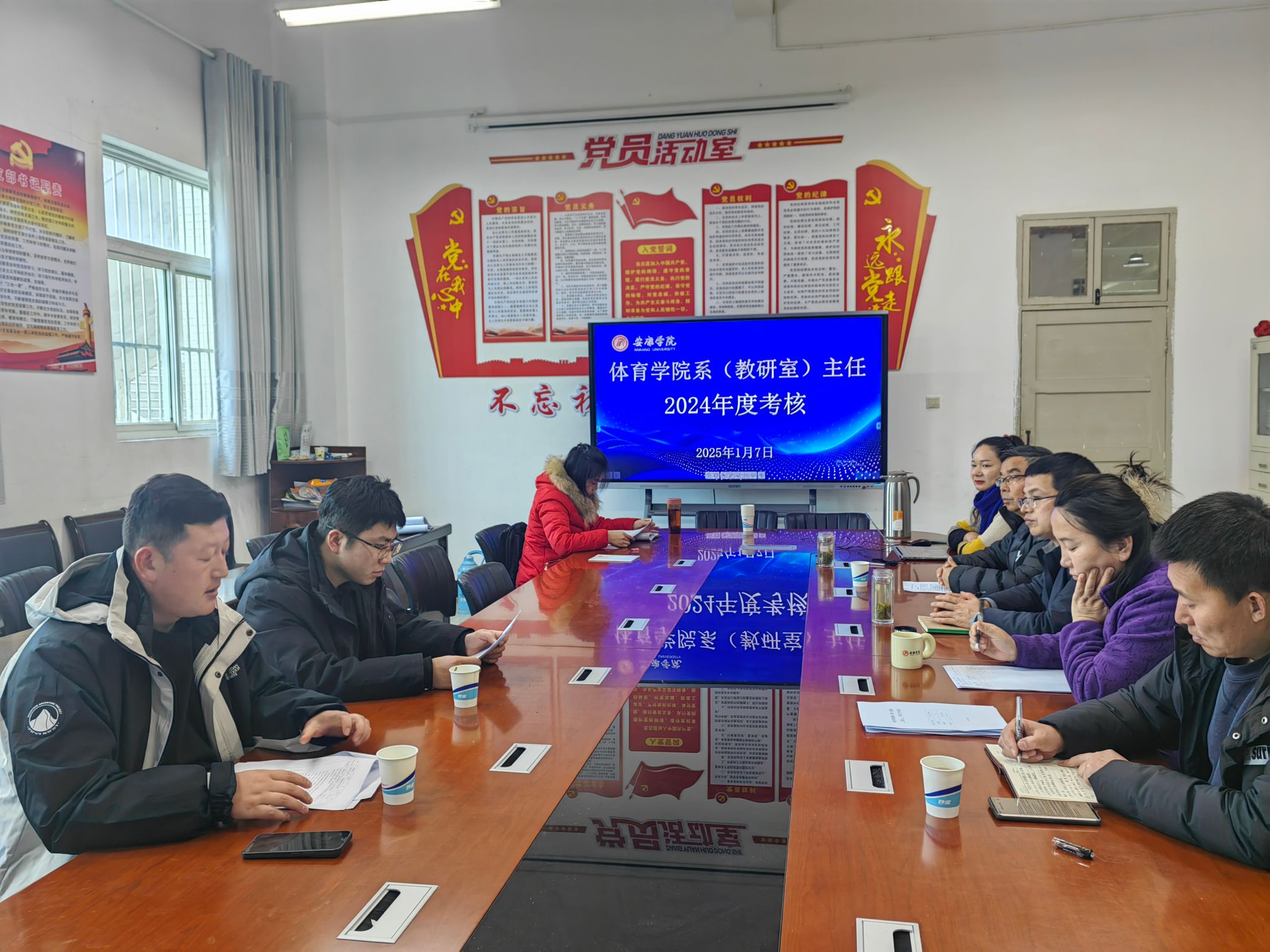 随后,对澳门正规电子游戏平台系(教研室)主任进行了考核,体育系主任廖建发、实验教学中心主任刘芹、大学体育教研室主任王俊杰分别进行了年度总结汇报,考核组通过听取汇报、座谈和查阅工作记录的方式进行考核,并针对本年度工作中存在的不足对三位教研室主任进行了现场反馈,并提出了下一步工作建议。