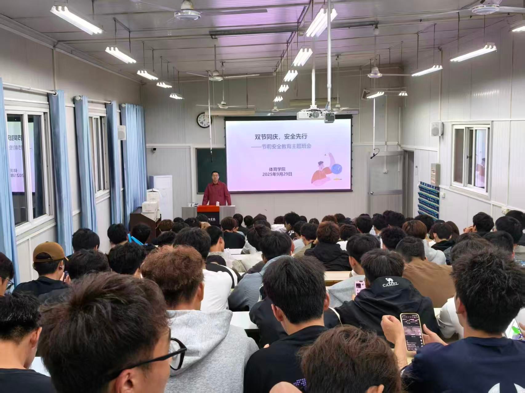 中秋、国庆双节将至,为切实增强学生安全意识,确保假期平安祥和,9月29日晚,澳门正规电子游戏平台在6408教室组织召开节前安全教育主题班会。本次班会由辅导员陆传梓主持,2025级全体学生参加,围绕节假日期间的各类安全隐患展开系统讲解,为学生平安度过假期筑牢思想防线。