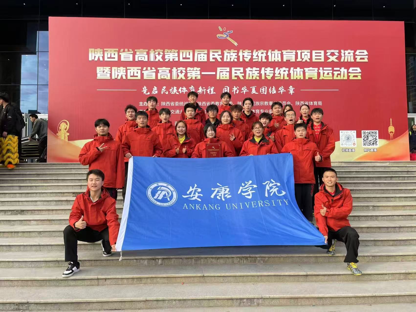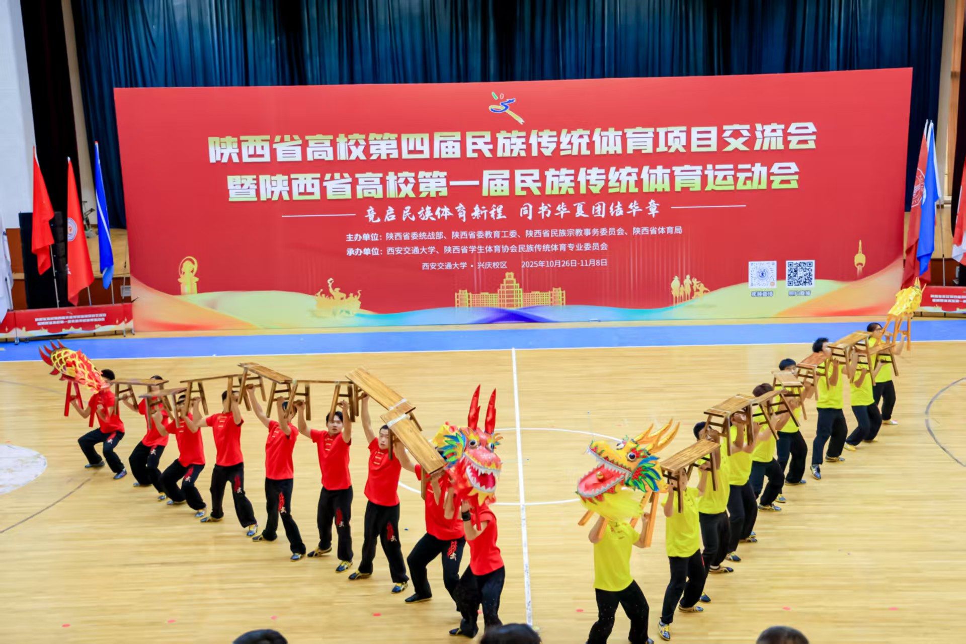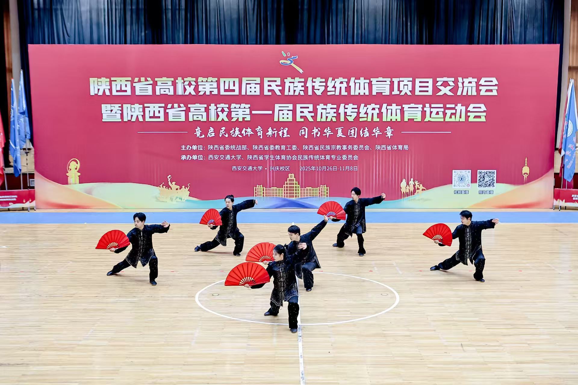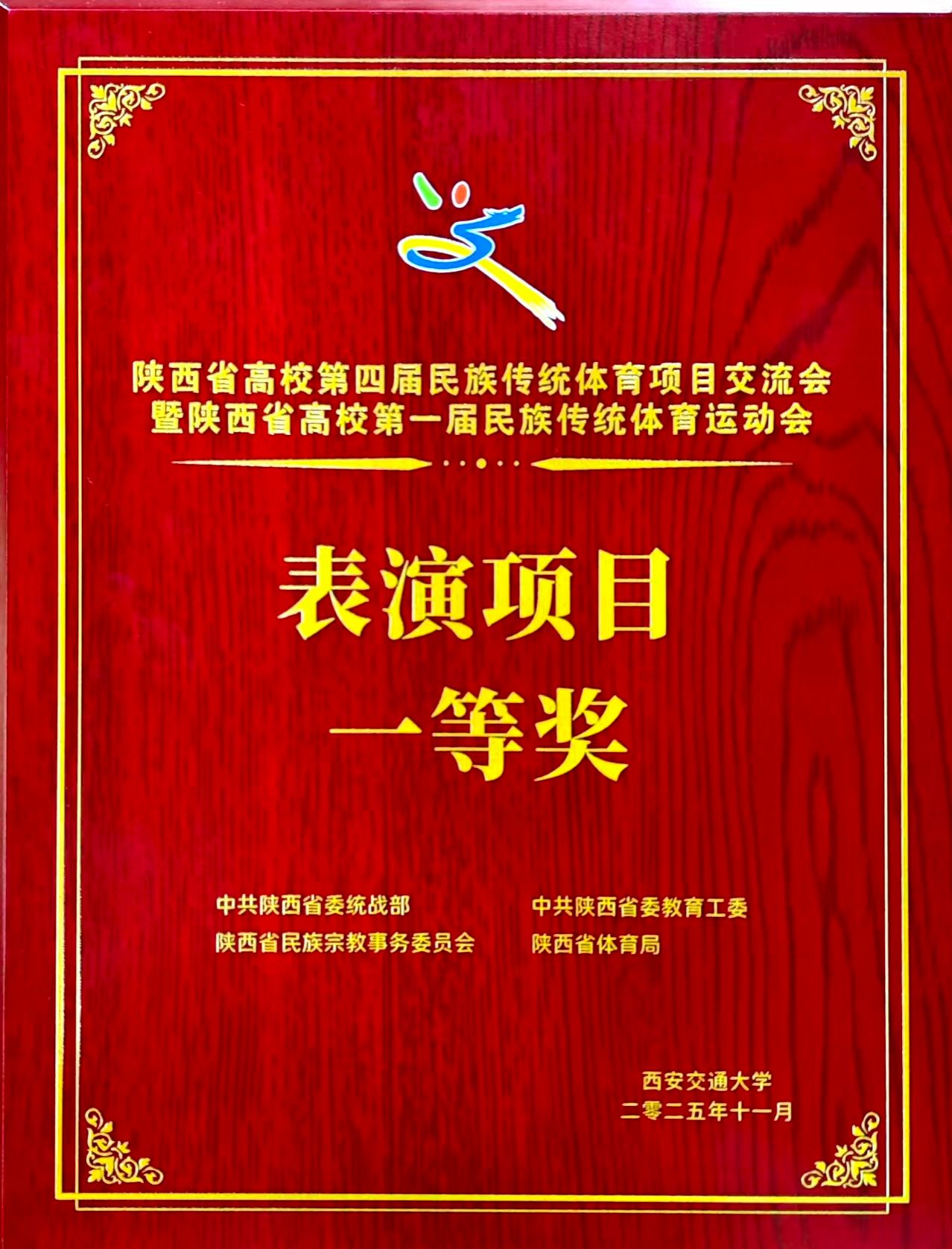 11月8日,由陕西省委统战部、陕西省委教育工委、陕西省民族宗教事务委员会、陕西省体育局联合主办的陕西省高校第四届民族传统体育项目交流会暨陕西省第一届民族传统体育运动会圆满落幕。我校武术队参加展演的太极扇项目获得一等奖,板凳龙项目获得优秀奖。