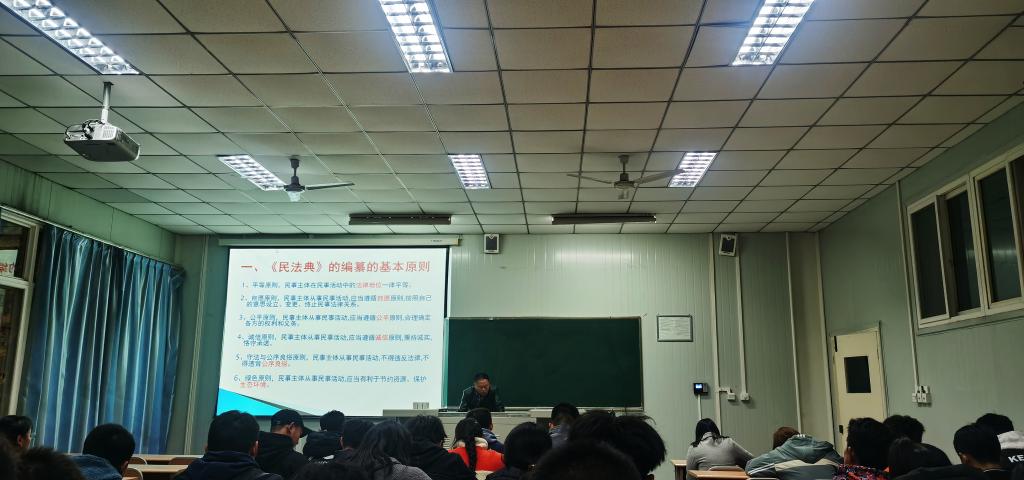 近日,澳门正规电子游戏平台党总支书记高立平在1026教室为全院学生党员、团总支、学生会干部以及主要班团干部开展《民法典》讲座。澳门正规电子游戏平台学工办副主任王立、团总支书记康梦瑶也聆听了讲座。