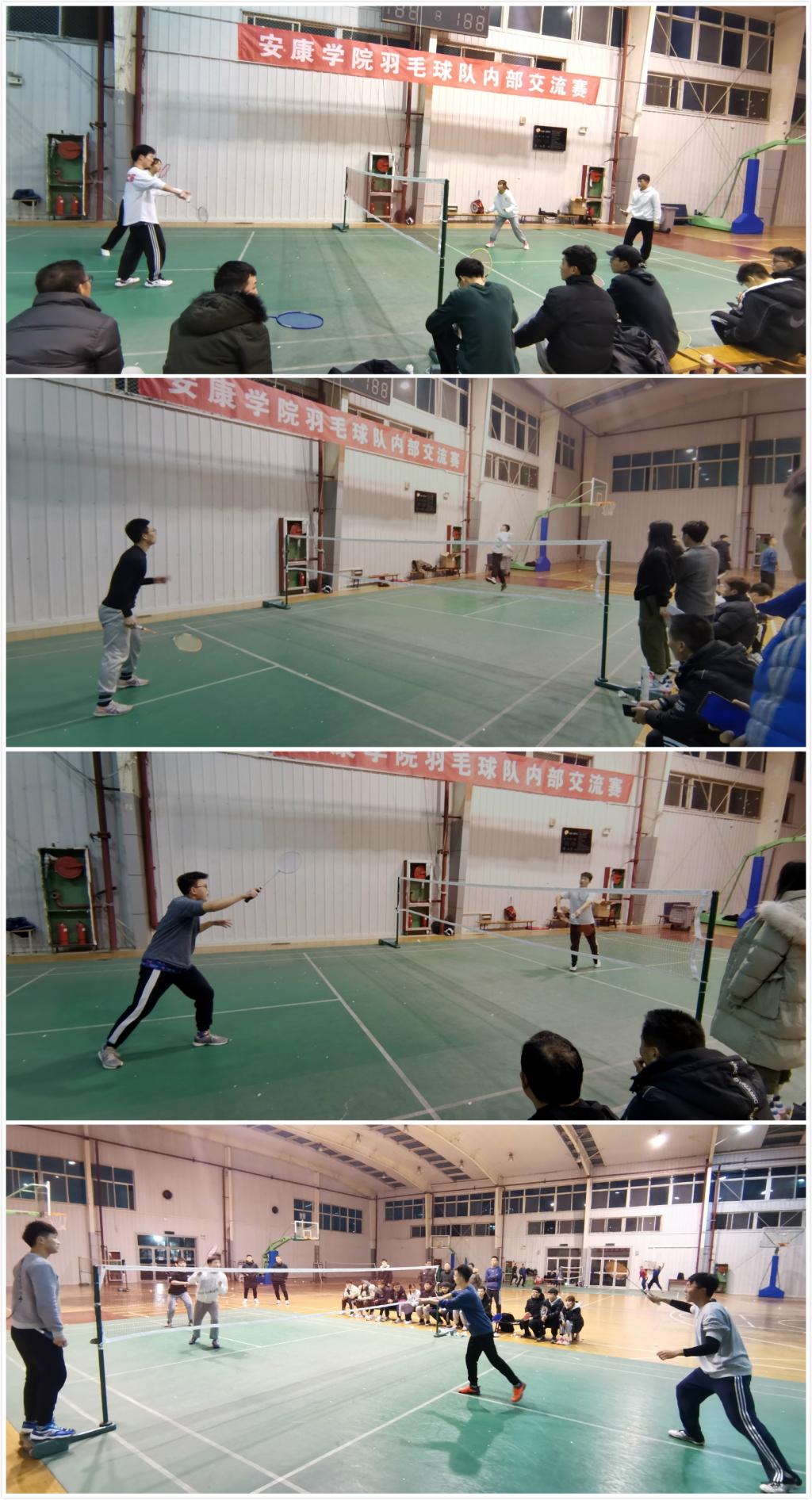12月29日晚,安康学院大学生羽毛球队内部交流赛决赛在体育馆二楼开打。澳门正规电子游戏平台党总支书记高立平、学工办副主任王立、团总支书记康梦瑶、教练王培刚、彭涛、李善庚和其他队员一起观看了比赛。