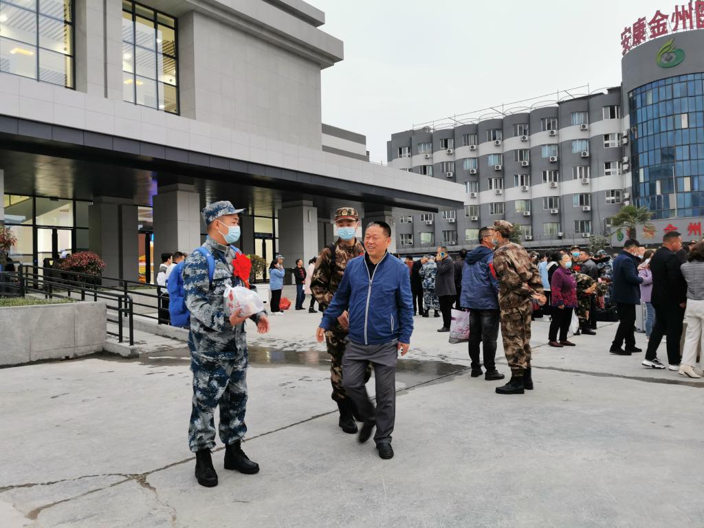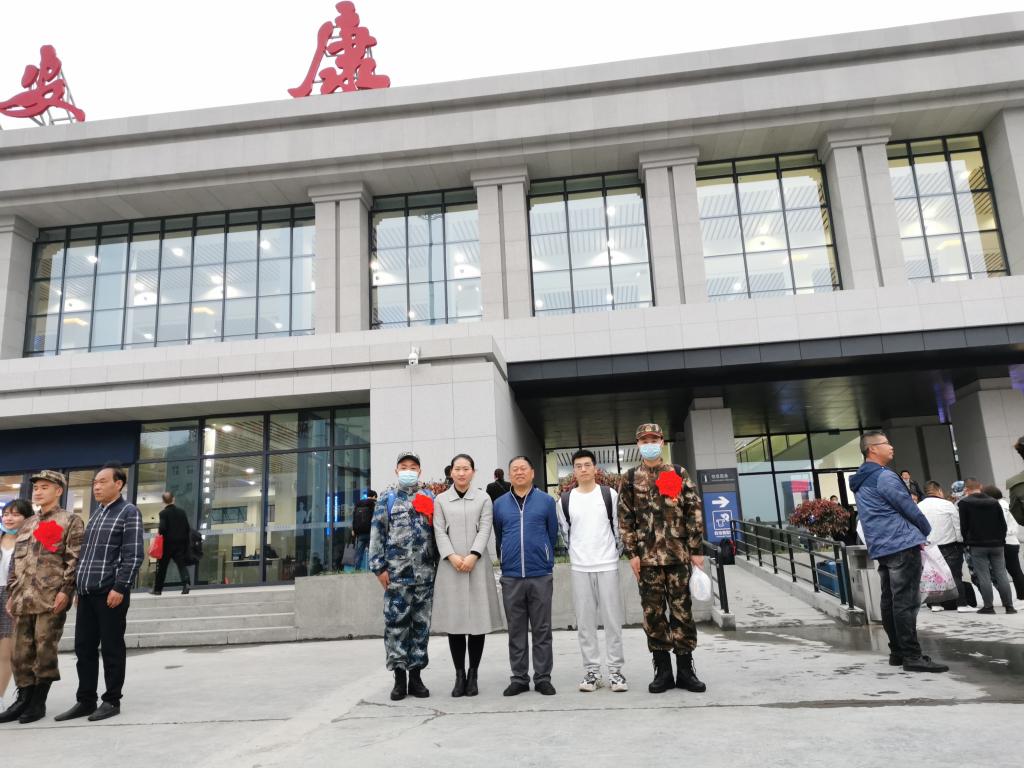 3月16日清晨,澳门正规电子游戏平台党总支书记高立平带领辅导员王立、康梦瑶赶赴安康火车站,为即将入伍的学生送行。