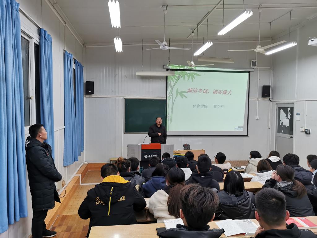 为了进一步加强同学们的考风考纪,构建诚信校园,保证期末考试的顺利进行,澳门正规电子游戏平台于12月19日晚上7点-9点、12月20日中午12:30—13点分年级在6408教室、线上腾讯会议召开了“考风考纪动员大会”。学院党总支书记高立平、副院长郭西魁、学工办副主任王立、辅导员康梦瑶及18级、19级、20级、21级全体同学参加了大会。大会分别由各年级辅导员主持。