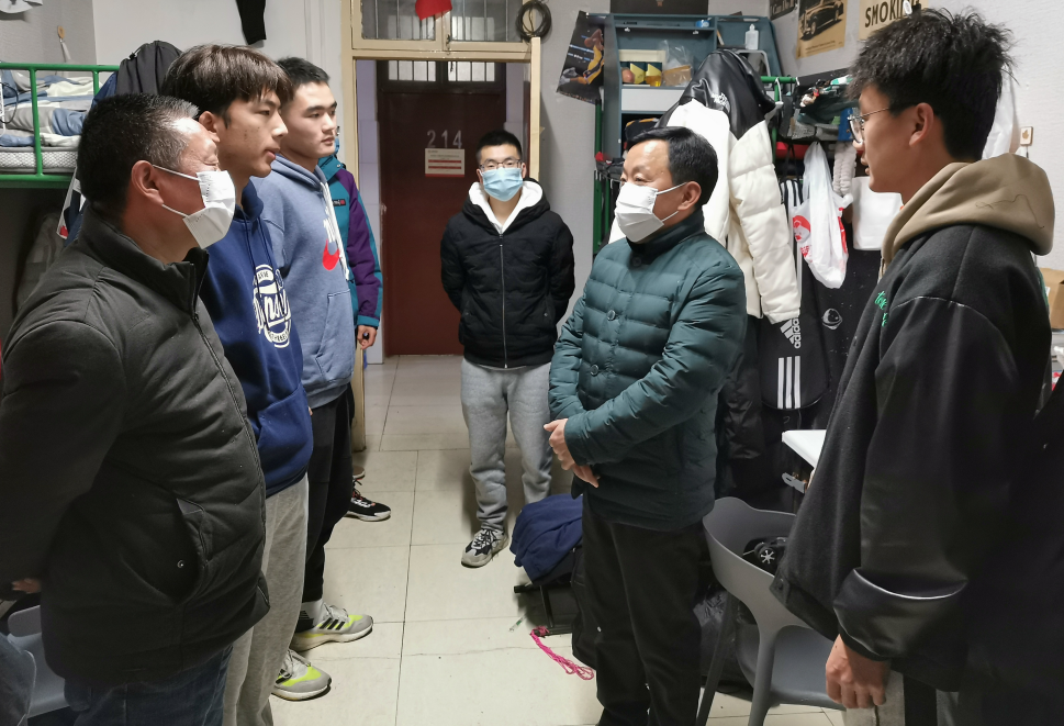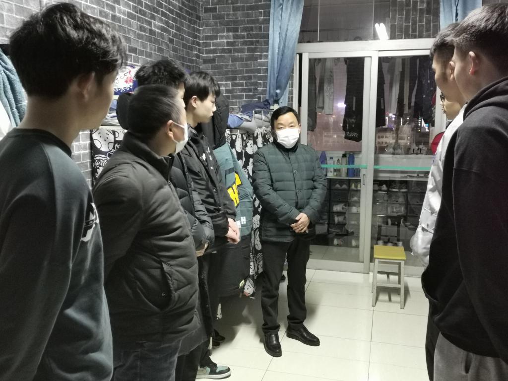 元月2日晚上,在学校疫情防控工作的关键时期,学校党委副书记、校长钟生海深入宿舍走访慰问澳门正规电子游戏平台学生,检查疫情防控工作的落实情况。澳门正规电子游戏平台党总支书记高立平、学工办副主任王立、辅导员康梦瑶陪同,走访看望学生并致以节日的问候。