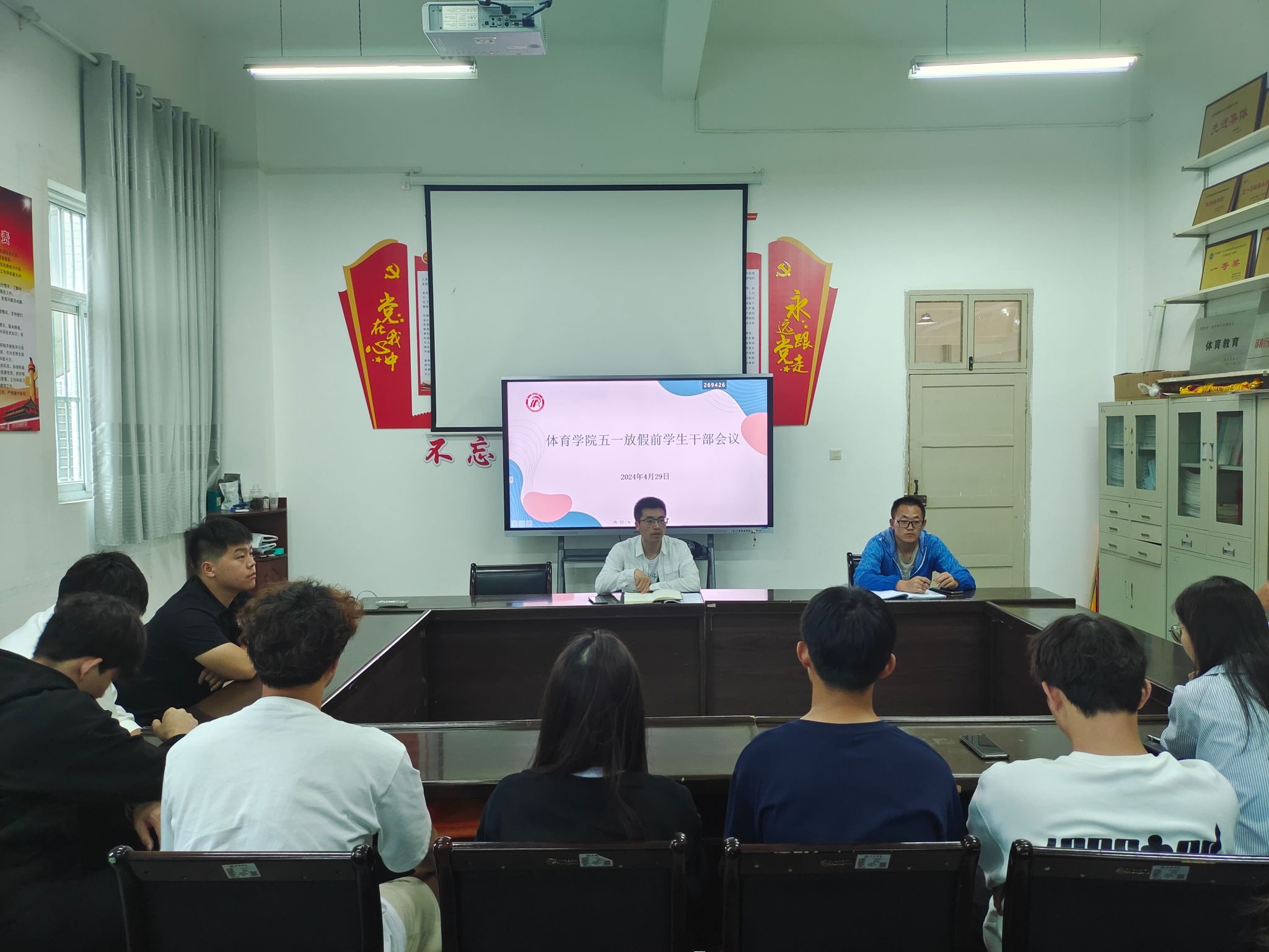 加强宣传教育,强化安全意识。4 月29日晚,我院在体育馆二楼召开全院学生安全教育大会,院长吕仙利向全体同学传达了学校关于“五一”放假的安排和具体要求;副院长郭西魁从国家安全、校园安全、生命安全等方面给同学们做了生动的教育。学院副院长李靖、团总支书记王毅、学工办主任王立、辅导员刘姚成也一起参加了安全教育大会。同时,“我是体育生”公众号上推出“五一出游安全”攻略,引导学生做好防范措施。