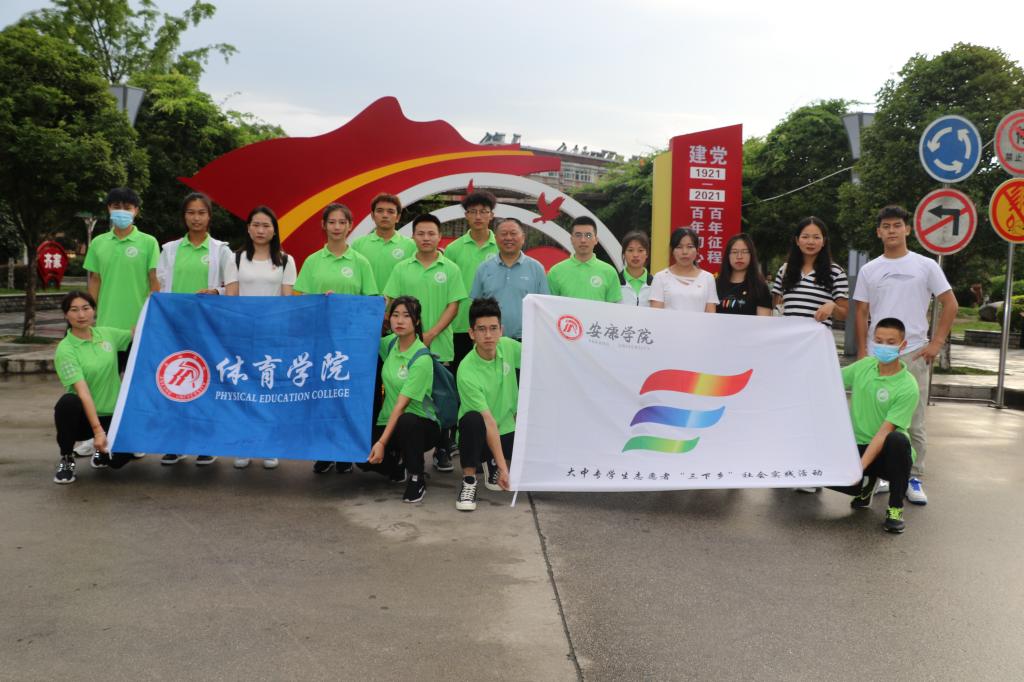 以庆祝中国共产党成立100周年为契机,为服务乡村振兴战略,巩固脱贫成果,引导和帮助新时代青年大学生在社会实践中受教育、长才干、作贡献,在观察实践中学党史、强信念、跟党走,在校团委的指导下,澳门正规电子游戏平台师生组建了秦巴连片经济贫困地区群众健康指导服务暑期社会实践团。活动坚持就近、就便灵活,保证师生健康安全为原则。2021年7月16日,澳门正规电子游戏平台一行20余师生赴汉阴县开展帮扶活动。以“关注贫困地区群众健康,为健康中国战略护航”为主题的大学生暑期“三下乡”志愿者服务社会实践汉阴行,为当地群众送上健康体育文化指导服务。澳门正规电子游戏平台师生将小我融入大我,将青春献给祖国,以实际行动庆祝中国共产党成立100周年。