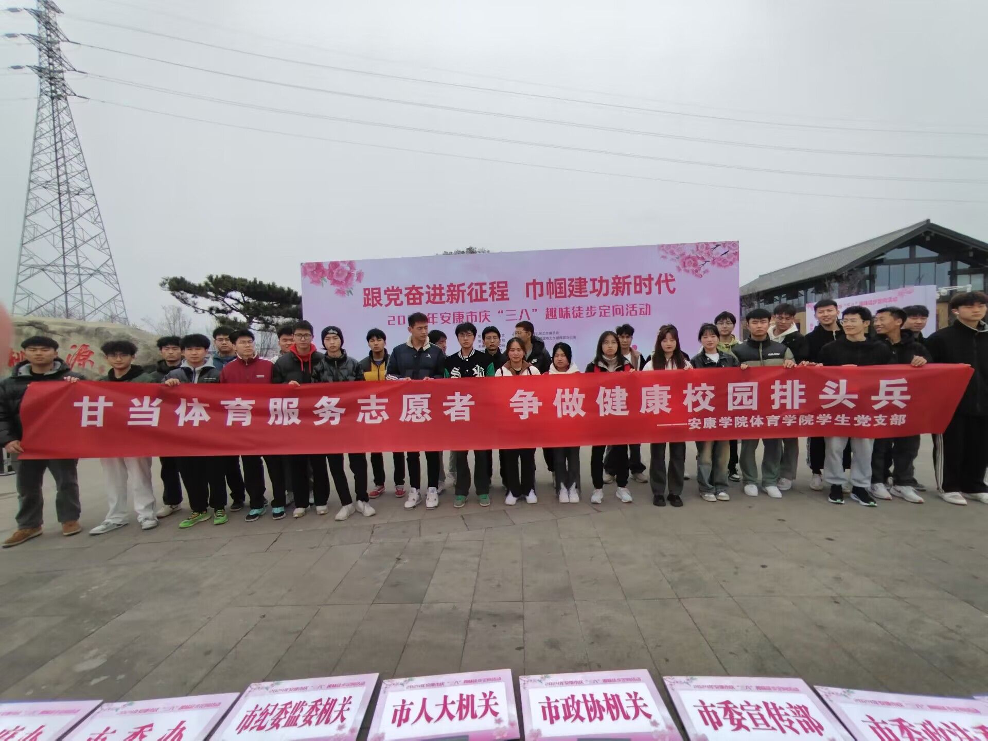 3月6日,由市妇联、市直机关工委、市教体局、市创文办和安康高新区管委会联合举办的主题为“跟党走奋进新征程,巾帼建功新时代”,庆“三八”趣味徒步定向活动在“桃花源”如期举行。我院选派由团总支书记刘姚成带领的30名志愿者、裁判参与此次赛事服务与管理工作。