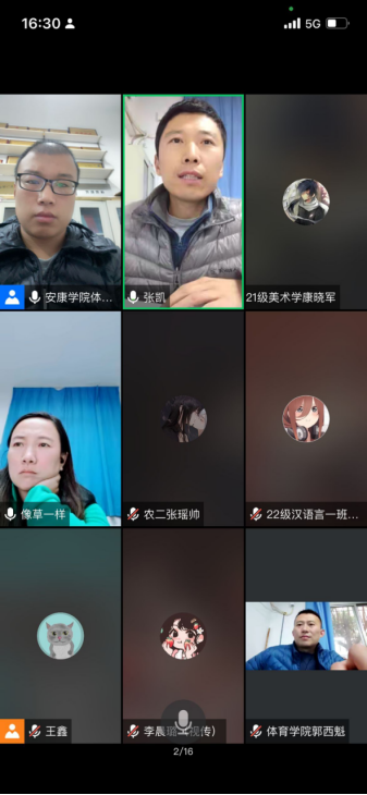 为了切实做好《大学体育》课程的教学工作,了解教学现状,科学安排教学内容,提高教学质量,促进大学体育课程改革,11月4日下午,大学体育教研室利用腾讯会议平台组织召开了2022—2023学年第1学期期中教学质量检查大学体育教学工作学生座谈会。澳门正规电子游戏平台院长吕仙利、副院长郭西魁、大学体育教研室主任李强、体质测试中心负责老师张凯、各二级学院体育部干部、2021级和2022级各班班长、体育委员共153名同学参加了座谈会。会议由李强主持。